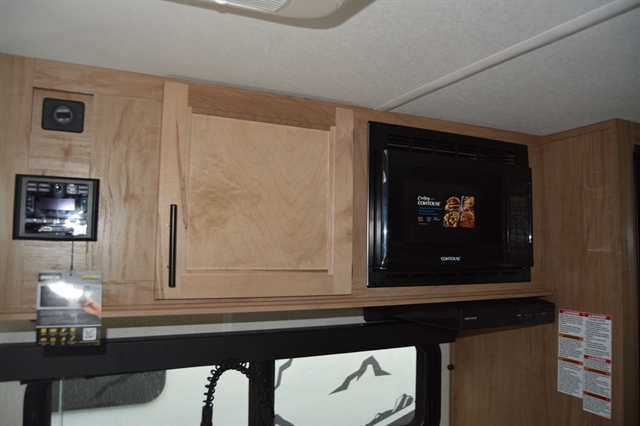 The 18TO features a full slide-out with queen bed, dinette and sofa with hidden bunk functioning as a great camper for both couples and families sleeping up to six. Enjoy full under bed storage, large dinette drawers and overhead cabinetry. The rear TV placement provides viewing from the entire interior. Coupled with the gourmet kitchen, and functional bath, you have everything you need to enjoy a rainy day. Outside includes under awning entertainment with Pup Kitchen, and LP quick connect!