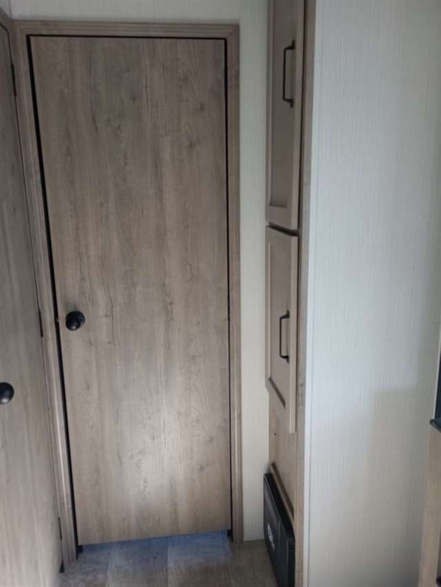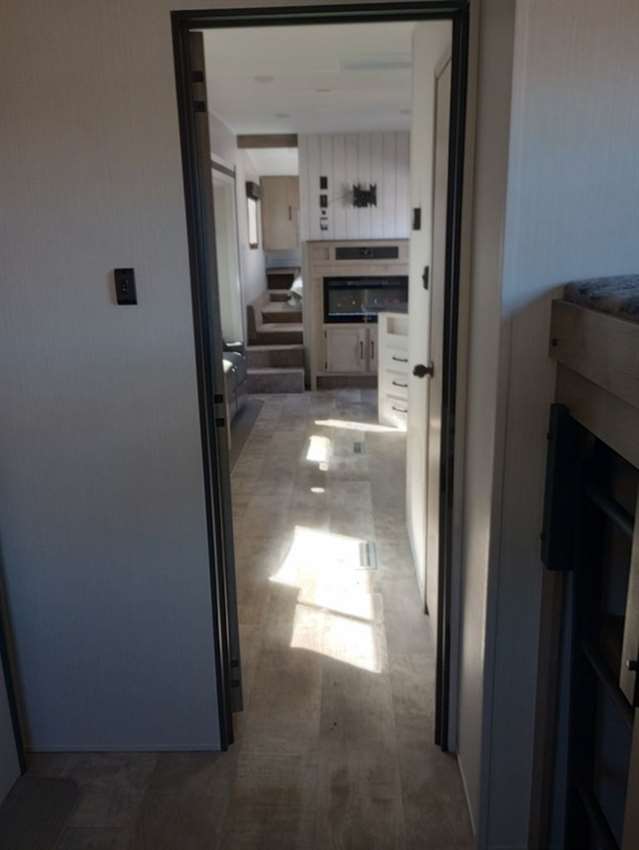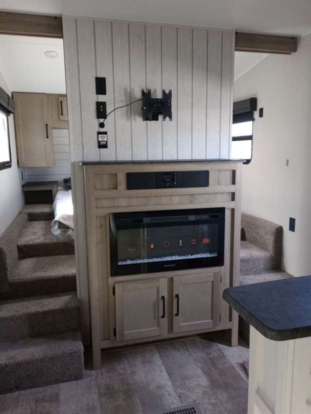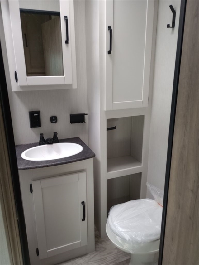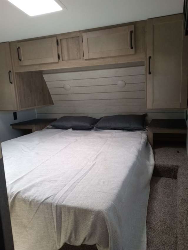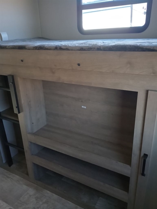 This rear bunk house Fifth Wheel gives you the ability to bring the whole group along. A bunk house with a slide out in the rear, a Dinette/Sofa slide in the center, and a full sized queen bed in the front grant you plenty of space. The Dinette and Sofa slide out also double as a great place to eat your meals while looking out the windows at the natural vista. For those of you who love the outdoors can furthermore make their meals in nature with the outside kitchen with a griddle.