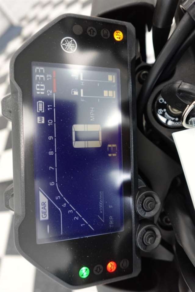 A slimmer seat and side covers improve the rider`s foot reach to the ground while retaining the MT-03`s comfortable riding position. Additionally, a new passenger seat design is wider and the cushioning is thicker for greater passenger comfort.