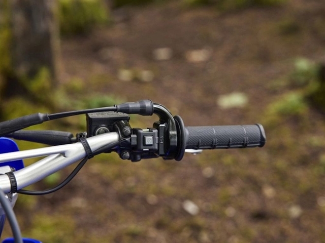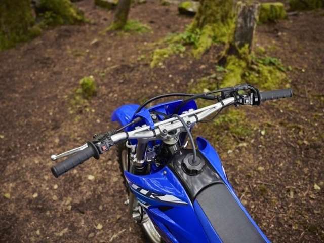 Team Yamaha-inspired colors and graphics and front and side number plates create distinctive, motocross styling.