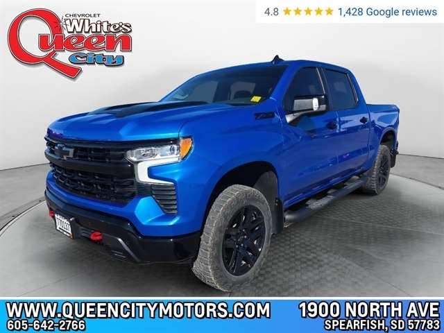 Equipment Protect this model from unwanted accidents with a cutting edge backup camera system. This 2025 Chevrolet Silverado 1500 offers Apple CarPlay for seamless connectivity. Never get into a cold vehicle again with the remote start feature on it. This model features steering wheel audio controls. It has automated speed control that adjusts to maintain a safe following distance, enhancing highway driving convenience. The leather seats in this unit are a must for buyers looking for comfort, durability, and style. The Chevrolet Silverado`s Lane Departure Warning helps keep you in your lane. Bluetooth technology is built into this unit, keeping your hands on the steering wheel and your focus on the road. This unit has a clean CARFAX vehicle history report. It is equipped with the latest generation of XM/Sirius Radio. The vehicle stays safely in its lane with Lane Keep Assist. Engulf yourself with the crystal clear sound of a BOSE sound system in the vehicle. Packages Convenience Package II: Premium Bose 7-Speaker Sound System; Power Sliding Rear Window with Rear Defogger; In-Vehicle Trailering System App; Universal Home Remote; Hitch Guidance with Hitch View. Dark Essentials Package: Black Name Plates; Black Tailgate CHEVROLET Lettering. Leather Package: Leather-Appointed Front Seat Trim; Up-Level Rear Seat with Storage Package. LT Trail Boss Premium Package: Power Tailgate. Safety Package: HD Surround Vision; Rear Cross Traffic Braking; Trailer Side Blind Zone Alert; Rear Pedestrian Alert; Ultrasonic Front and Rear Park Assist; Perimeter Lighting; Trailer Camera Provisions. Preferred Equipment Group 2LT: HD Rear Vision Camera; 20`` X 9`` High Gloss Black Painted Aluminum Wheels; Rear 60/40 Folding Bench Seat (folds Up); SiriusXM with 360L Trial Subscription; Bluetooth For Phone; Trailering Package; Standard Tailgate; Front LED Fog Lamps; Tire Pressure Monitoring System; Suspension Package; Steering Wheel Audio Controls; Teen Driver; Color-Keyed Carpeting Floor Covering; OnStar Services Capable; Power Front Windows with Passenger Express Down; Inside Rearview Mirror with Tilt; 2-Speed Electronic Autotrac Transfer Case; Deep-Tinted Glass; 12.3`` Multicolor Reconfigurable Digital Display; 6-Speaker Audio System; All-Weather Floor Liner; High Gloss Black Mirror Caps; Electronic Cruise Control; Power Rear Windows with Express Down; Chevy Safety Assist; Performance Red Recovery Hooks; Integrated Trailer Brake Controller; Power Front Windows with Driver Express Up/down; EZ Lift Power Lock and Release Tailgate; Convenience Package; Auto-Locking Rear Differential; Heated Power-Adjustable Outside Mirrors. Protection Package: Rear Wheelhouse Liners; Chevytec Spray-On Black Bedliner. 4`` Black Round Assist Steps. Front Bucket Seats. Adaptive Cruise Control. Riptide Blue Metallic. 3 Years SiriusXM. Molded Black Splash Guards. Power Tailgate. **Equipment listed is based on original vehicle build and subject to change. Please confirm the accuracy of the included equipment by calling the dealer prior to purchase.**