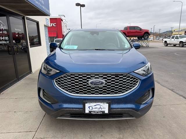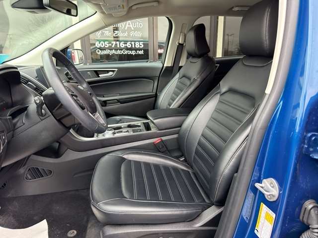 This unit's Cross-Traffic Alert: Safeguarding you from unexpected traffic when reversing. This vehicle offers Android Auto for seamless smartphone integration. See what's behind you with the back up camera on this mid-size suv. The leather seats in it are a must for buyers looking for comfort, durability, and style. It offers Automatic Climate Control for personalized comfort. The rear parking assist technology on the Ford Edge will put you at ease when reversing. The system alerts you as you get closer to an obstruction. Start this vehicle from inside with remote start. Bluetooth technology is built into this Ford Edge, keeping your hands on the steering wheel and your focus on the road. This mid-size suv has a clean CARFAX vehicle history report. This mid-size suv offers Apple CarPlay for seamless connectivity. This model has a 4 Cyl, 2.0L high output engine. Impresses the most discerning driver with the deep polished blue exterior on it.