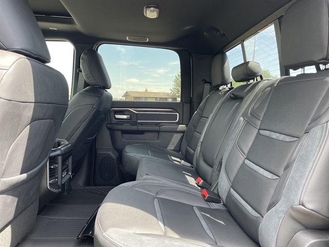 | LEVEL B EQUIPMENT GROUP -inc: Rear Window Defroster Blind Spot & Cross Path Detection LED Tail Lamps Power Adjustable Pedals Leather Wrapped Steering Wheel Rear Power Sliding Window Rear Dome w/On/Off Switch Lamp Front Fog Lamps Glove Box Lamp Auto Power-Folding Mirrors Footwell Courtesy Lamp Media Hub w/2 Charge Only USBs Heated Front Seats Mirror Running Lights Heated Steering Wheel Foam Bottle Insert (Door Trim Panel) Dampened Tailgate Security Alarm Big Horn IP Badge Power Adjustable Convex Aux Mirrors Forward & Reverse Utility Lights Locking Lower Glove Box Remote Start System Radio: Uconnect 5 Nav w/12.0 Display Google Android Auto Off-Road Information Pages Selectable Tire Fill Alert Trailer Tow Pages Disassociated Touchscreen Display HD Radio For Details Visit DriveUconnect.com For More Info Call 800-643-2112 12 Touchscreen Display Air Conditioning ATC w/Dual Zone Control GPS Navigation 4G LTE Wi-Fi Hot Spot SiriusXM w/360L All Radio Eq |
