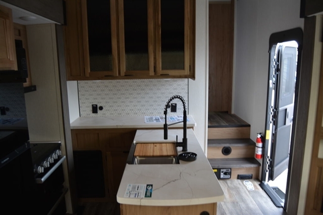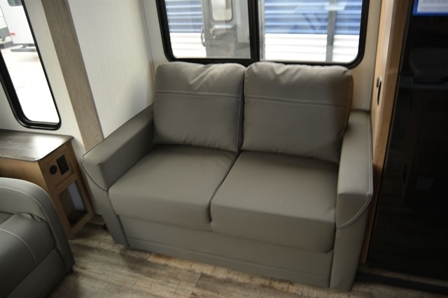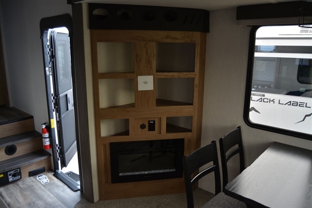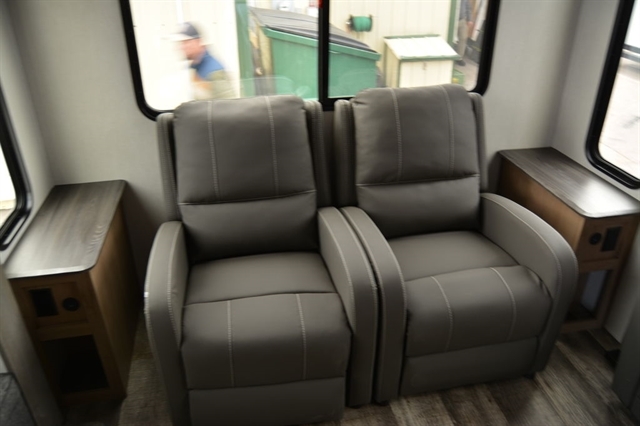 NEW FLOORPLAN! Optimized for couples but enough space for company, this coach has it all! Interior highlights include a convenient wine rack, two relaxing recliners, a free-standing table with chairs and storage ottoman seat, electric fireplace, removable shower rod for hang-drying, central vac system, panoramic windows at every turn, and a tankless water heater. Exterior features include a 15,000 BTU A/C, security camera system prep, and one-touch auto leveling for easy setup!