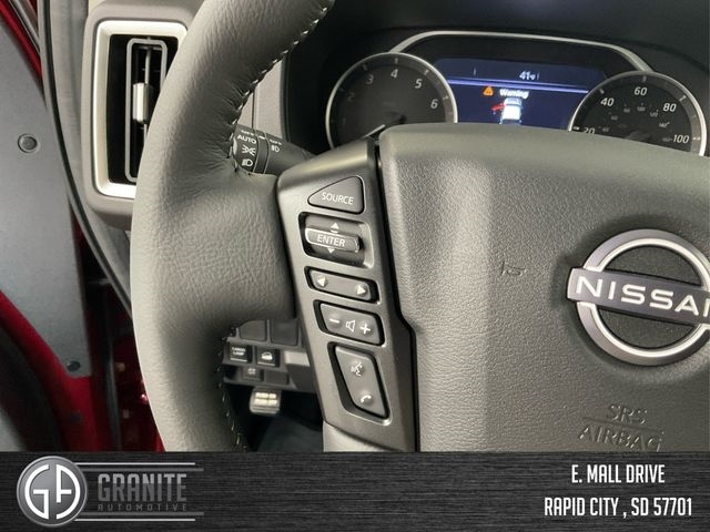 Lane Departure Warning, Bluetooth*, Backup Camera*, Intelligent Forward Collision Warning, Blind Spot Warning, Intelligent Auto Headlights, Brake Assist, Automatic Emergency Braking w/ Pedestrian Detection, Nissan Advanced Air Bag System, High Beam Assist, Cruise Control, Voice Recognition, Rear Cros Traffic Alert, Nissan Connect, Apple CarPlay, Android Auto, Touch Screen Display, Alloy Wheels, 4WD, 120V Power Outlet in Bed, 120V Power Outlet in Rear Center Console, 17`` Alloy Wheels, Bed Access Package, Bed Under-Rail Lighting, Blind Spot Warning, Brake assist, Fender Audio Package, Fender Premium Audio System w/10 Speakers, Front Halogen Fog Lights, Heated Front Seats, Heated Leather Steering Wheel, Heated Outside Mirrors, HVAC - Dual-Zone Front Auto A/C, I-Key w/Request Switches on O/S Handles, Illuminated Locking Glove Box w/Damper, Leather Shift Lever, Partial Under-Seat Storage Delete, Remote Engine Starter, Spray-In Bedliner, SV Convenience Package, Tow/Haul Mode Switch, Trailer Hitch w/Wiring Harness, Utili-Track System.