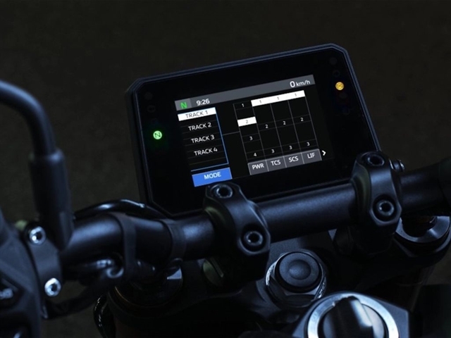 The MT-09 SP features an advanced six-axis Inertial Measurement Unit (IMU) that matches the base performance of proven IMU in the YZF-R1 Superbike. Data collected from the IMU and wheel speed sensors enable a high-tech suite of rider aids including a four-mode Traction Control System (TCS), Slide Control System (SCS), front wheel Lift Control System (LIF) and a two-mode Brake Control System. Each of these systems can be turned off and Traction Control, Slide Control and Lift Control can have their levels of intervention adjusted to preference.