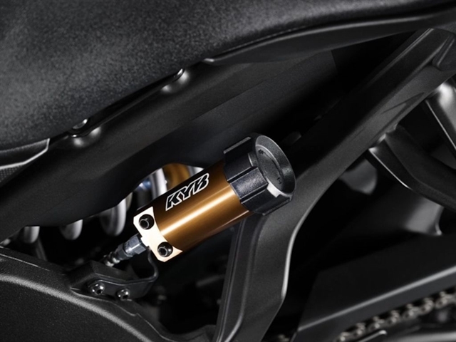 Premium Brembo® Stylema monoblock front brake calipers combine with a Brembo® radial master cylinder, large 320mm dual front discs, stainless steel brake lines and aggressive pad compounds to offer Supersport-level braking performance with exceptional power and feel.