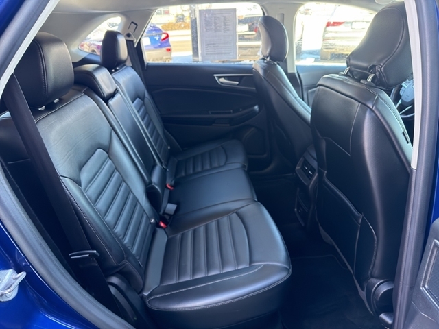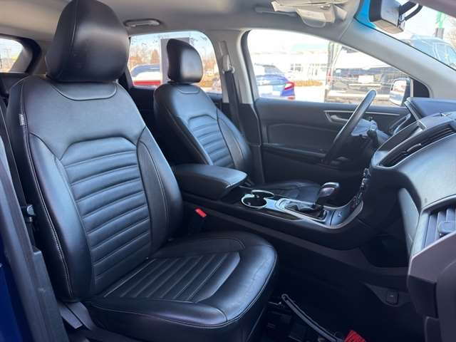 The leather seats in this vehicle are a must for buyers looking for comfort, durability, and style. It keeps you comfortable with Auto Climate. The state of the art park assist system will guide you easily into any spot. Protect it from unwanted accidents with a cutting edge backup camera system. Bluetooth technology is built into this unit, keeping your hands on the steering wheel and your focus on the road. This Ford Edge shines with an exquisite blue finish. It is equipped with all wheel drive. The vehicle has a V6, 3.5L high output engine. Set the temperature exactly where you are most comfortable in it. The fan speed and temperature will automatically adjust to maintain your preferred zone climate. Expand the cargo capabilities of it by using the installed roof rack. Easily set your speed in the Ford Edge with a state of the art cruise control system. Increase or decrease velocity with the touch of a button.