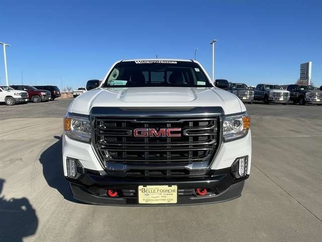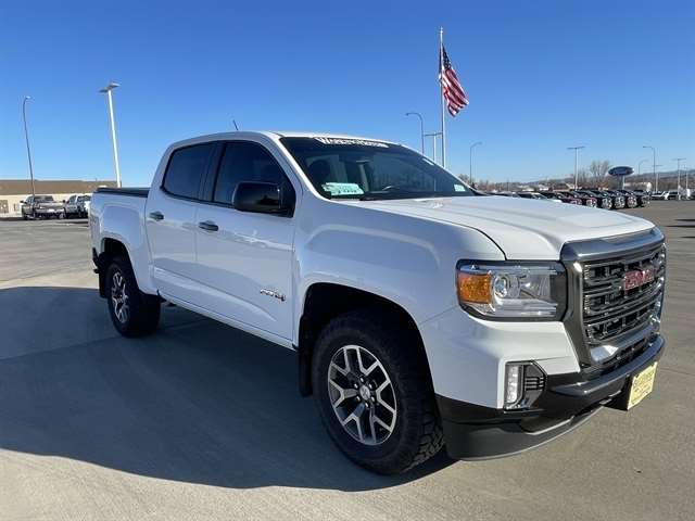 The 2022 GMC Canyon AT4 Crew Cab 4WD brings off-road capability and premium comfort to the midsize pickup segment. Finished in Summit White with a Jet Black/Kalahari interior, it has both rugged style and refined touches.