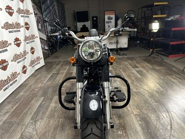 Fat Custom StyleRecalling the hardtail choppers of the `60s and `70s, the Fat Boy® Lo model keeps that heritage alive more than forty years later. It shows a darker side of the original fat custom bike—laid-back and blacked-out with an unmistakable profile on the road. But the nostalgic style isn`t just about the confident stance, paint and old-school detail. It`s how you look riding it. It`s how it feels. It`s the classic, relaxed riding position that speaks volumes. You`re not just cruising. You`re in charge—kicked back on a throne of machined metal surveying your domain.