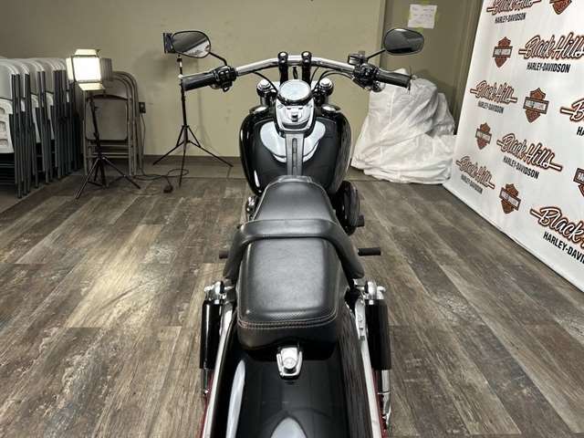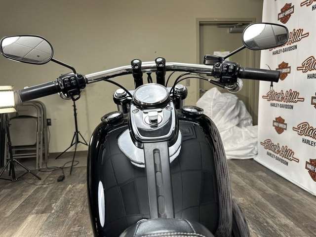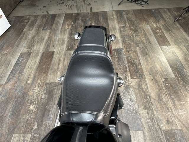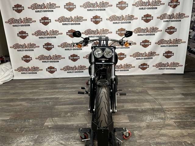 The Fat Bob model proves there’s no such thing as too much black. From the aluminum triple clamps and battery box cover to the headlight trim ring and rear shock covers, this thick-cut, menacing bad boy is blacked out from top to bottom, nose to tail. Go ahead. Flash some black.