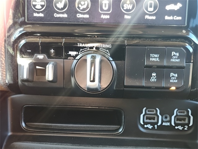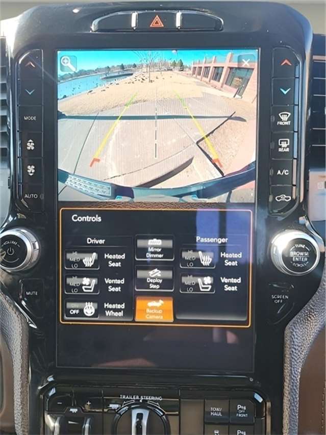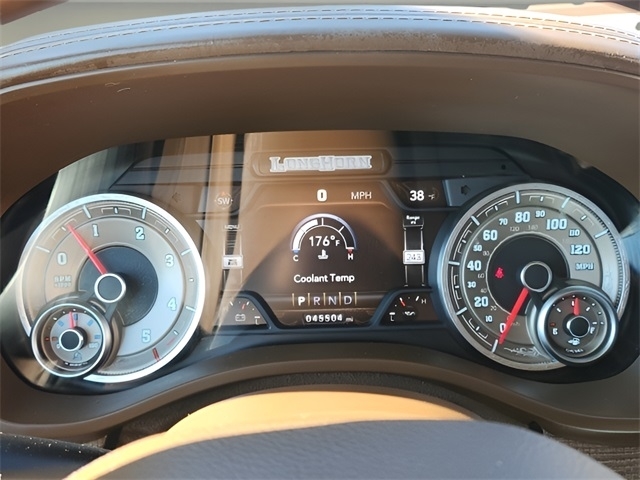 Check out the rest of the great features on this vehicle. 10th Anniversary Limited Longhorn Edition (DISC) (#1 Seat Foam Cushion, 3 Rear Seat Head Restraints, 4 Way Front Headrests, Bucket Seats, Driver Seat Memory, Full Length Premium Floor Console, Instrument Cluster Theme 6 - Limited Longhorn, MOPAR Bright Pedal Kit, Multi-Function Tailgate, Power 4-Way Driver Lumbar Adjust, Power 4-Way Passenger Lumbar Adjust, Premium Leather Bucket Seats (DISC), Rear 60/40 Folding Split Recline Seat, and Ventilated Front Seats), Bed Utility Group (MOPAR 4 Adjustable Cargo Tie-Down Hooks, MOPAR Deployable Bed Step, and Pick-Up Box Lighting), Body Color Bumper Group (Body Color Front Bumper and Body Color Rear Bumper w/Step Pads), Cold Weather Group (Engine Block Heater and MOPAR Winter Front Grille Cover), Longhorn Level 1 Equipment Group (DISC) (1-Yr SiriusXM Guardian Trial, 12`` Touchscreen Display, 4G LTE Wi-Fi Hot Spot, 5-Year SiriusXM Travel Link Service, Apple CarPlay, Blind Spot & Cross Path Detection, Disassociated Touchscreen Display, For Details, Visit DriveUconnect.com, For More Info, Call 800-643-2112, Google Android Auto, GPS Antenna Input, GPS Navigation, harman/kardon 19 Speaker Premium Sound, HD Radio, Integrated Center Stack Radio, Integrated Voice Command w/Bluetooth, Power Running Boards, Radio: Uconnect 12 w/Navigation, SiriusXM Radio Service, SiriusXM Satellite Radio, SiriusXM Traffic Plus, SiriusXM Travel Link, SiriusXM w/360L, USB Host Flip, Ventilated Rear Seats, and Wireless Charging Pad), Protection Group, Quick Order Package 28K Longhorn, Trailer Tow Group (DISC) (Trailer Brake Control, Trailer Light Check, Trailer Reverse Steering Control, and Trailer Tire Pressure Monitoring System), 10 Speakers, 3.21 Rear Axle Ratio, 3.92 Rear Axle Ratio, 4-Wheel Disc Brakes, 48V Belt Starter Generator, 8.4`` Touchscreen Display, ABS brakes, Adjustable pedals, Air Conditioning, Alloy wheels, AM/FM radio: SiriusXM, Apple CarPlay/Android Auto, Audio memory, Auto High-beam Headlights, Auto-dimming door mirrors, Auto-dimming Rear-View mirror, Automatic temperature control, Brake assist, Bumpers: chrome, Chrome Exterior Mirrors, Compass, Delay-off headlights, Driver door bin, Driver vanity mirror, Dual front impact airbags, Dual front side impact airbags, Electronic Stability Control, Emergency communication system: SiriusXM Guardian, Front anti-roll bar, Front Bucket Seats, Front Center Armrest w/Storage, Front dual zone A/C, Front fog lights, Front License Plate Bracket, Front reading lights, Front Seat Back Map Pockets, Front wheel independent suspension, Fully automatic headlights, Garage door transmitter, Genuine wood console insert, Genuine wood dashboard insert, Genuine wood door panel insert, Heated door mirrors, Heated Front Seats, Heated front seats, Heated rear seats, Heated Second Row Seats, Heated Steering Wheel, Heated steering wheel, Illuminated entry, Leather steering wheel, Leather Trimmed Bucket Seats, Low tire pressure warning, Manufacturer`s Statement of Origin, Memory seat, Navigation System, Occupant sensing airbag, Outside temperature display, Overhead airbag, Overhead console, Panic alarm, ParkView Rear Back-Up Camera, Passenger door bin, Passenger vanity mirror, Pedal memory, Power 8-Way Driver & Passenger Seats, Power door mirrors, Power driver seat, Power passenger seat, Power steering, Power windows, Radio data system, Radio: Uconnect 4C Nav w/8.4`` Display, Rain sensing wipers, Rear anti-roll bar, Rear seat center armrest, Rear step bumper, Rear window defroster, Remote keyless entry, Security system, Speed control, Split folding rear seat, Steering wheel mounted audio controls, Tachometer, Telescoping steering wheel, Tilt steering wheel, Traction control, Trip computer, Turn signal indicator mirrors, Variably intermittent wipers, Ventilated