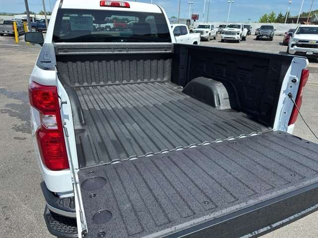 Equipment Protect this unit from unwanted accidents with a cutting edge backup camera system. The rear parking assist technology on the vehicle will put you at ease when reversing. The system alerts you as you get closer to an obstruction. Lane Keep Assist in the vehicle helps maintain safe driving by gently steering to stay within the lane. This 2025 Chevrolet Silverado 1500`s Lane Departure Warning helps keep you in your lane. Bluetooth technology is built into the vehicle, keeping your hands on the steering wheel and your focus on the road. This 1/2 ton pickup offers Apple CarPlay for seamless connectivity. It comes equipped with Android Auto for seamless smartphone integration on the road. with XM/Sirus Satellite Radio you are no longer restricted by poor quality local radio stations while driving this unit. Anywhere on the planet, you will have hundreds of digital stations to choose from. It has a 4 Cyl, 2.7L high output engine. Packages WT Convenience Package: Deep-Tinted Glass; Electric Rear-Window Defogger. WT Safety Package: Rear Cross Traffic Braking; Rear Pedestrian Alert; Rear Chrome Bumper; Ultrasonic Front and Rear Park Assist; Perimeter Lighting; Front Chrome Bumper; High Gloss Black Mirror Caps; Lane Change Alert with Side Blind Zone Alert. WT Value Package: Trailering Package. Work Truck Package: Skid Plates; Heavy-Duty Air Filter. Preferred Equipment Group 1WT: HD Rear Vision Camera; Bluetooth For Phone; Black (semi-Gloss) Front Bumper; Black (semi-Gloss) Rear Bumper; 3.5`` Monochromatic Display Driver Info Center; Rubberized-Vinyl Floor Covering; Standard Tailgate; Tire Pressure Monitoring System; 40/20/40 Front Split Bench Seat; Teen Driver; OnStar Services Capable; Power Front Windows with Passenger Express Down; Remote Keyless Entry; 4-Way Manual Driver Seat Adjuster; Inside Rearview Mirror with Tilt; Solar Absorbing Tinted Glass; SiriusXM Delete; Electronic Cruise Control; Chevy Safety Assist; Manual Tailgate Function with No EZ Lift; Manual Tilt Wheel Steering Column; Single-Speed Transfer Case; Power Front Windows with Driver Express Up/down; Front Frame-Mounted Black Recovery Hooks; TurboMax Engine; Locking Tailgate; Heated Power-Adjustable Outside Mirrors. Chevytec Spray-On Black Bedliner. Trailering Package. Auto-Locking Rear Differential. 17`` X 8`` Bright Silver Painted Aluminum Wheels. Integrated Trailer Brake Controller. Electric Rear-Window Defogger. 120-Volt Interior Power Outlet. 265/70R17 AT BW Tires. Front Chrome Bumper. Deep-Tinted Glass. Front Black Bowtie Emblem. EZ Lift Power Lock and Release Tailgate. Skid Plates. Color-Keyed Carpeting Floor Covering. **Equipment listed is based on original vehicle build and subject to change. Please confirm the accuracy of the included equipment by calling the dealer prior to purchase.**