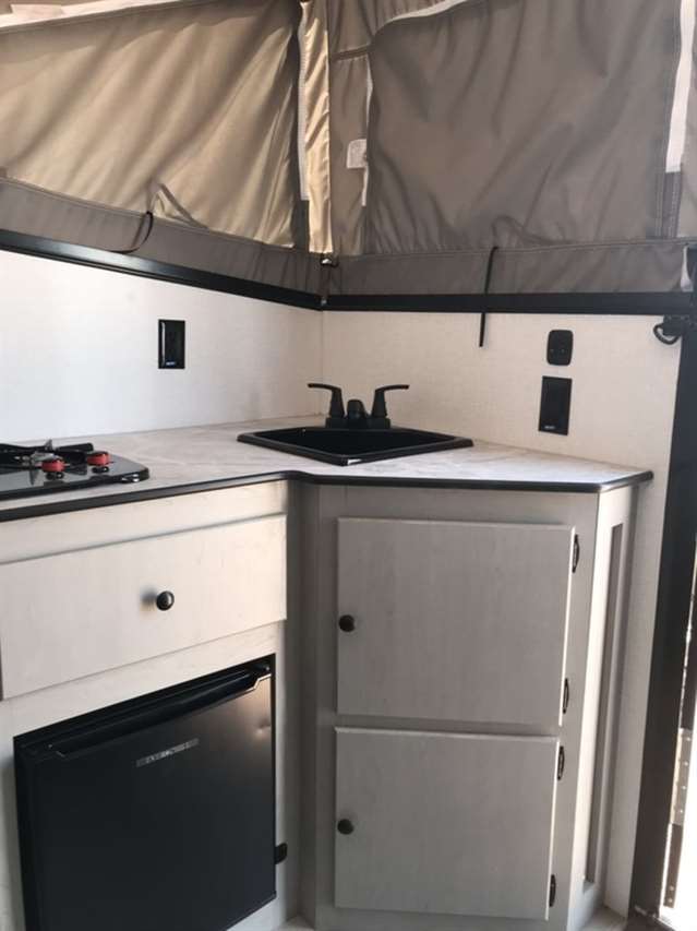 Campside Pull out Kitchen w/Griddle & 12VDC/110VAC Portable Refrigrator/Freezer (Pro Only)
