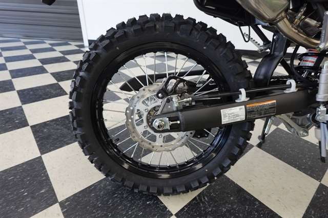 The KLX®300 highly versatile motorcycle exhibits agile maneuverability whether on- or off-road thanks to a slim, lightweight perimeter frame. The caster angle (26.7°) and short wheelbase contribute to quick handling, while the high rigidity of the frame ensures straight-line stability. Long-travel suspension is trail-tuned and offers 10 in of travel up front and 9.1 in in the rear. The 43mm inverted cartridge-style front fork has adjustable compression damping to optimize fork performance for conditions and personal preference. The Uni-Trak® rear suspension offers bump absorption, compression and rebound damping adjustability, and fully adjustable preload, allowing riders to tailor shock settings to personal preference. Substantial braking power comes from a powerful 250mm petal disc and twin-piston caliper up front and a 240mm petal disc and single-piston caliper in the rear. Strong dual-sport performance is further enabled with a 21-in front wheel and 18-in rear wheel. Wheel rigidity contributes to light, smooth handling and offers great durability for off-road riding.