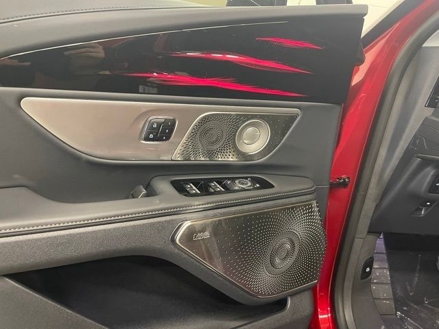 Check out the rest of the great features on this vehicle. Equipment Group 203A Reserve III (110V Power Converter, Auto Air Refresh, BlueCruise Equipped (4-Years Included), Digital Scent, Hands-Free Power Liftgate, Panoramic Vista Roof with Powershade, Premium Leather-Trimmed Heated/Ventilated Captain`s Chairs, Radio: AM/FM Revel Ultima 3D Audio System, Rear Heated Seats with Switch Control, SiriusXM with 360L, and Wheels: 21`` Bright Machined Aluminum), Jet Appearance Package (Black Exterior Elements, Body-Color Exterior Elements, and Wheels: : 22`` Satin Dark Luster Aluminum), Lincoln Connectivity Package, 10 Speakers, 4-Wheel Disc Brakes, ABS brakes, Adaptive suspension, Air Conditioning, Alloy wheels, AM/FM radio: SiriusXM with 360L, Apple CarPlay/Android Auto, Auto High-beam Headlights, Auto tilt-away steering wheel, Auto-dimming Rear-View mirror, Automatic temperature control, Brake assist, Bumpers: body-color, Compass, Delay-off headlights, Driver door bin, Driver vanity mirror, Dual front impact airbags, Dual front side impact airbags, Electronic Stability Control, Emergency communication system: 911 Assist, Exterior Parking Camera Rear, Four wheel independent suspension, Front anti-roll bar, Front Bucket Seats, Front Center Armrest w/Storage, Front dual zone A/C, Front reading lights, Fully automatic headlights, Garage door transmitter, Heated door mirrors, Heated front seats, Heated steering wheel, Illuminated entry, Knee airbag, Leather steering wheel, Lincoln Digital Experience, Low tire pressure warning, Memory seat, Navigation System, Occupant sensing airbag, Outside temperature display, Overhead airbag, Overhead console, Panic alarm, Passenger door bin, Passenger vanity mirror, Power door mirrors, Power driver seat, Power Liftgate, Power passenger seat, Power steering, Power windows, Premium Leather Trimmed Captain`s Chairs, Radio data system, Radio: AM/FM Revel Audio System, Rain sensing wipers, Rear anti-roll bar, Rear reading lights, Rear seat center armrest, Rear window defroster, Rear window wiper, Remote keyless entry, Security system, Speed control, Speed-sensing steering, Speed-Sensitive Wipers, Split folding rear seat, Spoiler, Steering wheel memory, Steering wheel mounted audio controls, Tachometer, Telescoping steering wheel, Tilt steering wheel, Traction control, Trip computer, Turn signal indicator mirrors, Variably intermittent wipers, and Ventilated fro