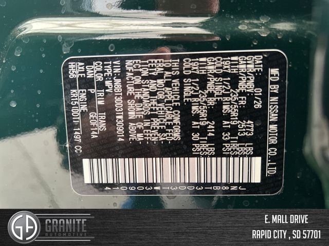 The 2026 Nissan Rogue Platinum is a refined and versatile compact SUV that blends upscale comfort with everyday practicality. Designed with a modern exterior and a spacious, well-appointed interior, this Rogue trim is ideal for drivers who want both style and functionality. Its intelligent all-wheel drive system enhances traction and control across varying road conditions, while the efficient 1.5L gasoline engine delivers a smooth and confident ride for both city driving and longer journeys. Price includes: $3500 - Nissan Customer Cash. Exp. 05/04/2026