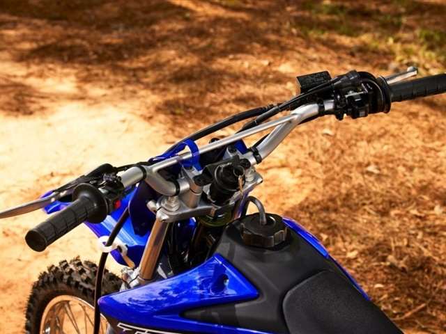 Team Yamaha-inspired colors and graphics with front and side number plates are styled like the YZ motocross lineup, while the sleek, narrow fuel tank creates a big-bike look and feel.