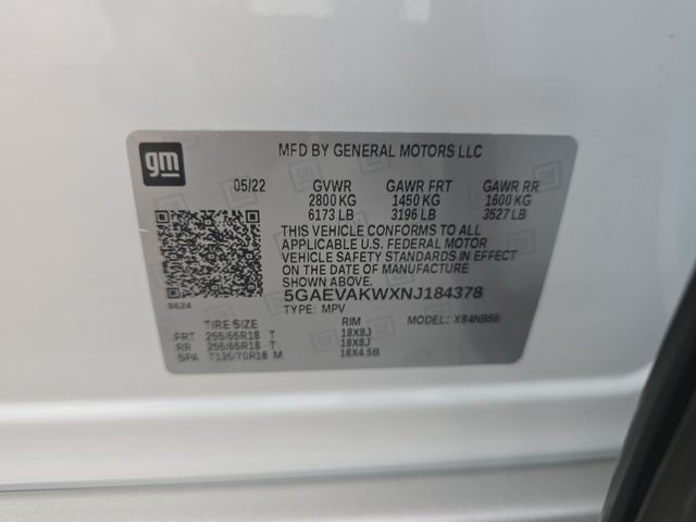 | VIN | 5GAEVAKWXNJ184378 |
