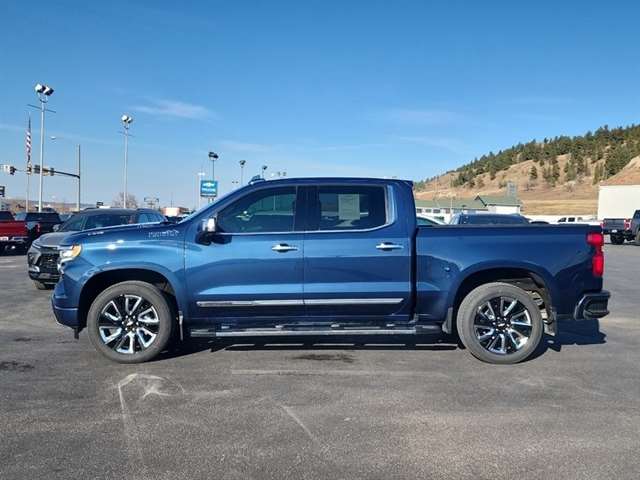Equipment Good News! This certified CARFAX 1-owner vehicle has only had one owner before you. This 1/2 ton pickup is pure luxury with a heated steering wheel. This vehicle features a high end BOSE stereo system. The Chevrolet Silverado`s Lane Departure Warning helps keep you in your lane. This 2022 Chevrolet Silverado 1500 stays safely in its lane with Lane Keep Assist. The Chevrolet Silverado is equipped with the latest generation of XM/Sirius Radio. This unit has a clean CARFAX vehicle history report. Apple CarPlay: Seamless smartphone integration for the Chevrolet Silverado - stay connected and entertained on the go! The Chevrolet Silverado has auto-adjust speed for safe following. It features steering wheel audio controls. This Chevrolet Silverado offers Android Auto for seamless smartphone integration. The leather seats are soft and supportive on it. Bluetooth technology is built into the vehicle, keeping your hands on the steering wheel and your focus on the road. Packages Preferred Equipment Group 3LZ: Trailer Side Blind Zone Alert; Chrome Assist Steps; Driver Memory; Perforated Leather Seat Trim; SiriusXM with 360L; Power Sliding Rear Window with Rear Defogger; Safety Alert Seat; Ultrasonic Front and Rear Park Assist; Trailer Camera Provisions; Electric Rear-Window Defogger; Theft Deterrent System (unauthorized Entry); Front Rainsensing Wipers; Compass; Heated Steering Wheel; 120-Volt Instrument Panel Power Outlet; Heated Driver & Front Outboard Passenger Seats; Wireless Charging; Front Bucket Seats; Color-Keyed Carpeting Floor Covering; OnStar and Chevrolet Connected Services Capable; 2nd Row Heated Outboard Seats; Power Front Passenger Windows with Express Up/down; Front Carpeted Floor Mats; Rear Carpeted Floor Mats; 12.3`` Multicolor Reconfigurable Digital Display; Body-Color Painted Mirror Caps; Power Rear Windows with Express Down; Integrated Trailer Brake Controller; HD Surround Vision; Ventilated Driver and Front Passenger Seats; Leather Wrapped Steering Wheel; Power Tilt and Telescoping Steering Column; Keyless Open and Start; Perimeter Lighting; Auto-Dimming Inside Rearview Mirror; LED Cargo Area Lighting; Bluetooth For Phone; Remote Vehicle Starter System; Trailering App; Floor Mounted Center Console; Bed View Camera; Rear Cross Traffic Alert-Braking; Trailering Package; Electrical Steering Column Lock; Wireless Phone Projection; Up-Level Rear Seat with Storage Package; Standard Tailgate; 2 USB Data Ports; Front LED Fog Lamps; Chrome Recovery Hooks; Steering Wheel Audio Controls; Dual Rear USB Ports (charge Only); Universal Home Remote; 2-Speed Transfer Case; Deep-Tinted Glass; 10-Way Power Driver Seat with Lumbar; Chevytec Spray-On Black Bedliner; Dual Exhaust with Polished Outlets; Electronic Cruise Control; Chevy Safety Assist; Hitch Guidance with Hitch View; Power Front Windows with Driver Express Up/down; Power Tailgate; Rear Pedestrian Detection; 10-Way Power Passenger Seat Adjuster with Lumbar; Outside Heated Power-Adjustable Mirrors; Rear Wheelhouse Liners; Auto-Locking Rear Differential. Technology Package: 15`` Diagonal Multicolor Head-Up Display; Rear Camera Mirror; Enhanced Automatic Emergency Braking; Adaptive Cruise Control. High Country Premium Package: Power Sunroof; 22`` X 9`` Painted Aluminum Wheels; P275/50R22SL AS BW Tires; All-Weather Floor Liner. 22`` X 9`` Painted Aluminum Wheels. Power Sunroof. Adaptive Ride Control Suspension. Multi-Flex Tailgate. All-Weather Floor Liner. Multi-Flex Tailgate Step Lights. Front Black Bowtie Emblem. Wheel Locks (set of 4). **Equipment listed is based on original vehicle build and subject to change. Please confirm the accuracy of the included equipment by calling the dealer prior to purchase.**