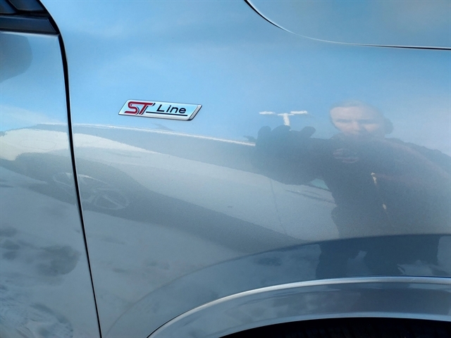 - Roof rack side rails in black, rear spoiler, and ST-Line badging
