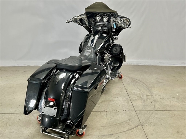 Every aspect of the rear of the CVO™ Street Glide® model is designed and combined to form a unique whole. The full-depth saddlebags offer hauling capacity with a dramatic styling angle. Right under the saddlebags are the dual exhaust 4-inch Touring mufflers, billet end caps with contrast chrome and black accents and gleaming chrome exhaust shields. And shining from the seamless design are the striking LED combination stop-turn-taillight assemblies, with wires tastefully concealed. It all comes together to give you an integrated custom look, with the storage and extra convenience you`d expect from a top-of-the-line Touring machine.