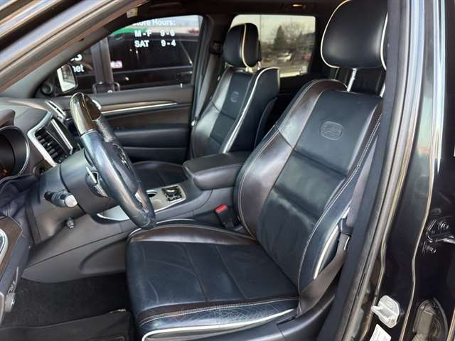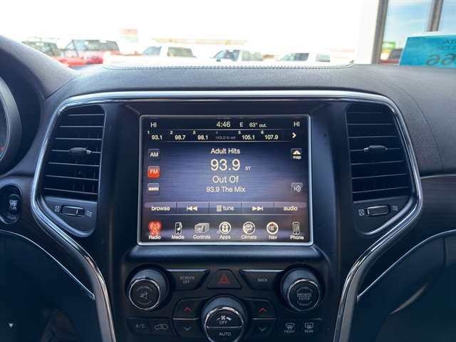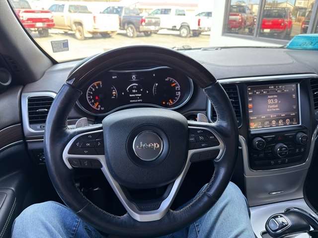 Start it from inside with remote start. Our dealership has already run the CARFAX report and it is clean. A clean CARFAX is a great asset for resale value in the future. The leather seats in the Jeep Grand Cherokee are a must for buyers looking for comfort, durability, and style. An off-road package is installed on this vehicle so you are ready for your four-wheeling best. Keep your hands warm all winter with a heated steering wheel in the Jeep Grand Cherokee . Bluetooth technology is built into it, keeping your hands on the steering wheel and your focus on the road. See the road and the surrounding area better with the Xenon HID headlamps on the vehicle. Once you have these you'll want them on all your cars. You'll never again be lost in a crowded city or a country region with the navigation system on this 2015 Jeep Grand Cherokee .