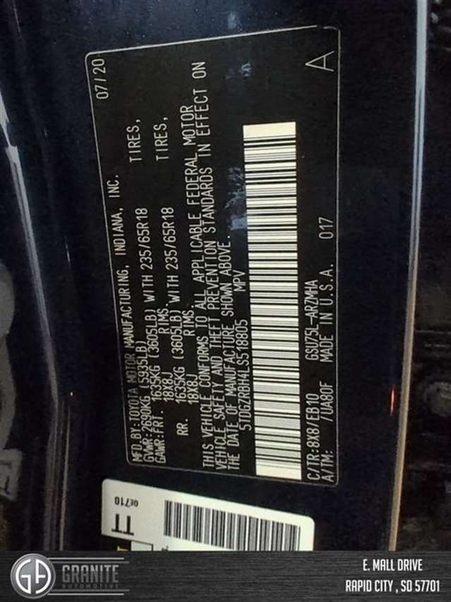 | VIN | 5TDGZRBH4LS518805 |