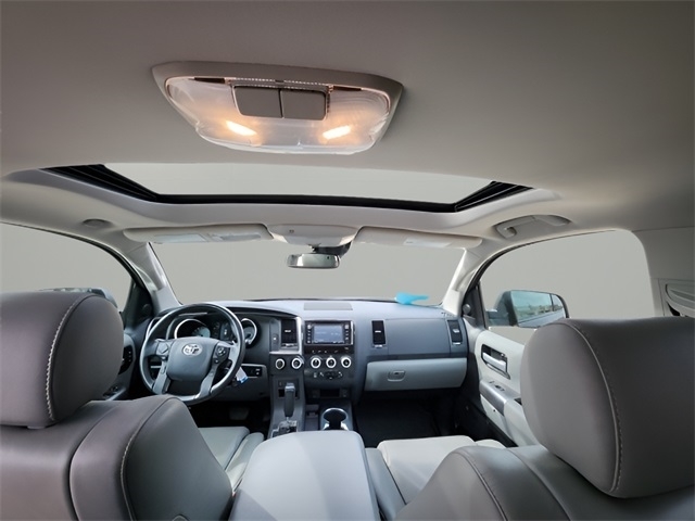 Check out the rest of the great features on this vehicle. 6-Speed Automatic Electronic, 4WD, 20`` x 8`` Alloy Wheels, 3rd row seats: split-bench, 4-Wheel Disc Brakes, 4.30 Axle Ratio, 8 Speakers, ABS brakes, Air Conditioning, Alloy wheels, AM/FM radio: SiriusXM, Auto High-beam Headlights, Auto-dimming door mirrors, Automatic temperature control, Blind spot sensor: Blind Spot Monitor (BSM) warning, Brake assist, Bumpers: body-color, CD player, Compass, Delay-off headlights, Distance pacing cruise control: Dynamic Radar Cruise Control, Driver door bin, Driver vanity mirror, Dual front impact airbags, Dual front side impact airbags, Electronic Stability Control, Exterior Parking Camera Rear, Four wheel independent suspension, Front anti-roll bar, Front Bucket Seats, Front Center Armrest, Front dual zone A/C, Front fog lights, Front Heated Bucket Seats, Front reading lights, Fully automatic headlights, Headlight cleaning, Heated door mirrors, Heated front seats, Illuminated entry, Knee airbag, Leather Seat Trim, Leather Shift Knob, Leather steering wheel, Low tire pressure warning, Navigation System, Occupant sensing airbag, Outside temperature display, Overhead airbag, Overhead console, Panic alarm, Passenger door bin, Passenger vanity mirror, Power door mirrors, Power driver seat, Power Liftgate, Power moonroof, Power passenger seat, Power steering, Power windows, Radio: Entune Premium Audio with Navigation, Rear air conditioning, Rear anti-roll bar, Rear reading lights, Rear seat center armrest, Rear window defroster, Rear window wiper, Reclining 3rd row seat, Remote keyless entry, Roof rack, Security system, Speed control, Speed-sensing steering, Split folding rear seat, Spoiler, Steering wheel mounted audio controls, Sun blinds, Tachometer, Telescoping steering wheel, Tilt steering wheel, Traction control, Trip computer, Turn signal indicator mirrors, Variably intermittent wipers, and Voltmeter.