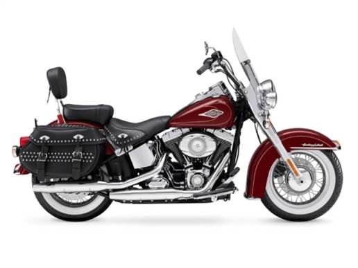 2010 Harley-Davidson® Heritage Softail®The nostalgic styling of the Heritage Softail® Classic recall a bygone era, while its studded leather saddlebags and removable windshield make it a capable touring mount. |