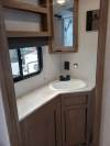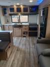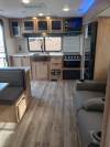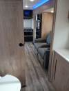 NEW FLOORPLAN! This lightweight couples coach embodies versatility! On top of the rear kitchen with a full pantry, the interior includes plush theatre seats with heat-light-massage, central vac system, transformable dinette with extra sleeping space, panoramic rear window over the kitchen sink, USB/USB-C ports throughout, electric fireplace, and removable shower rod for hang-drying. Exterior features include two-point entry, oversized 20’ awning, 15,000 BTU A/C, and security camera system prep!