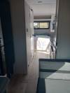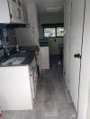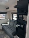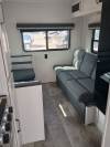 This rear living travel trailer does not contain any slide outs so it is super light weight and easy to tow. A sofa and dinette are found in the back with a large window to the exterior. If you are one who likes outdoor storage, this plan comes with plenty of it for all of your belongings.