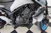 A slimmer seat and side covers improve the rider`s foot reach to the ground while retaining the MT-03`s comfortable riding position. Additionally, a new passenger seat design is wider and the cushioning is thicker for greater passenger comfort. |
