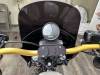 A bulldog stance with a slammed speedometer and peanut tank, massive triple clamps, and 49mm front forks.